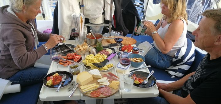 Vi stod tildligt op og sejlede i silende regnvejr. Det tog ca. fire timer og vi var gennemblødte. Jeg var nede og skifte tøj da vi var nået halvvejs, det var dejligt at få...