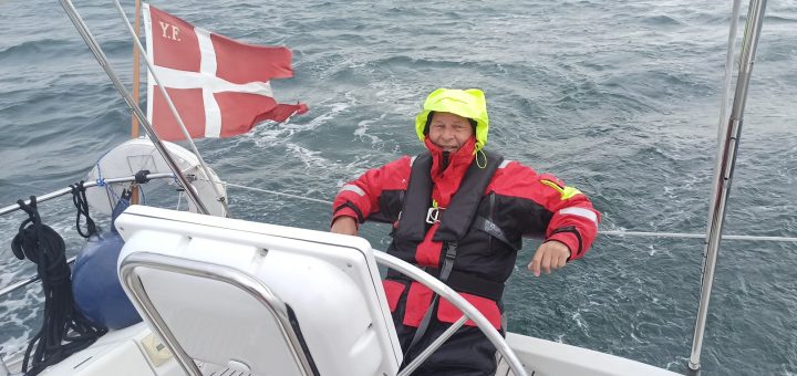 08.07.2024 Klokken er 19.30 og solen skinner, der er ingen vind, eller buler på vandet.Men sådan har det ikke hele tiden været, det startede blæsende og overskyet. Trods vind fra siden gik havnemanøvren ud...