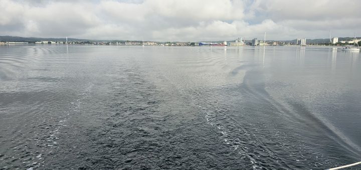 søndag. Vi stod op og sejlede afsted. Vi vil gerne lige se at kongeskibet lave havnemanøvre i morgen. måske vi kan lære noget, det er jo også et stort skib. Gps’en siger der kun...
