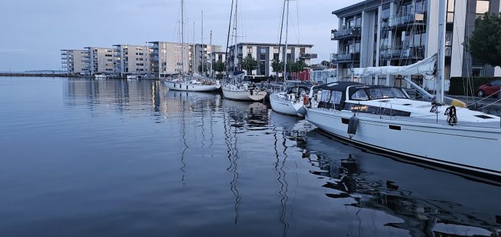 torsdag Vi vågnede ved at Berit og Jens gik hen over båden, det lyder som om de er ved at tage asted. Vi skal lige op og sige farvel.Klokken er otte, nå ja når...