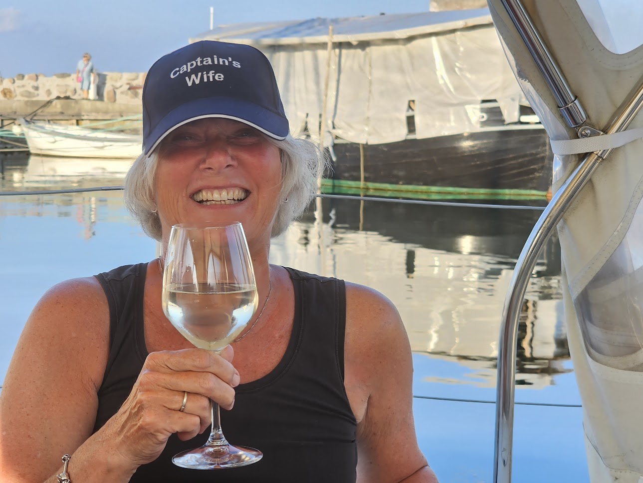 Vi finder en butik der sælger stof som Sus kan bruge til sine syprojekter. De har også nogle kasketter med teksten “Captain” og “Captain’s Wife” sådan et par må vi have.