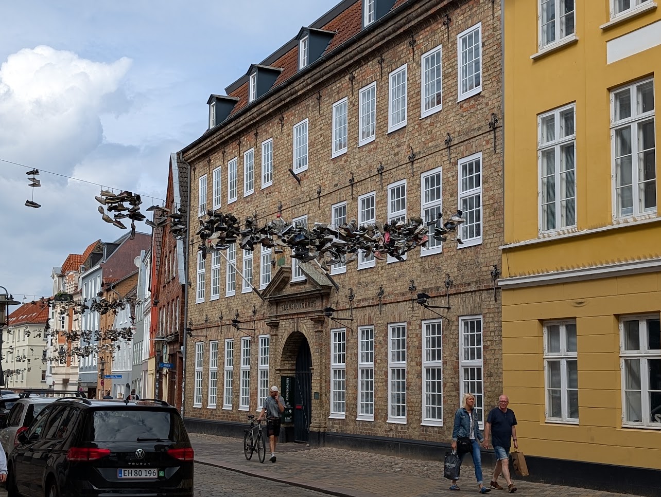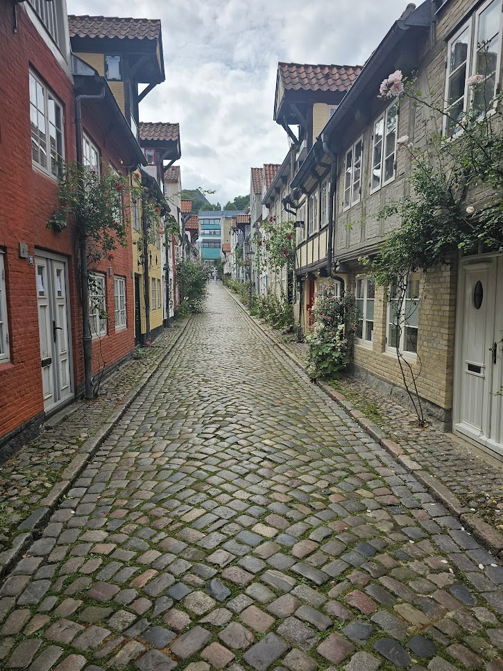 løbet af eftermiddagen går vi en tur mere, vi har spurgt Perplexity om hvad man skal se i Flensborg, og den synes vi skal gå til Oluf Samson Gang. Det er en hyggelig lille gade.